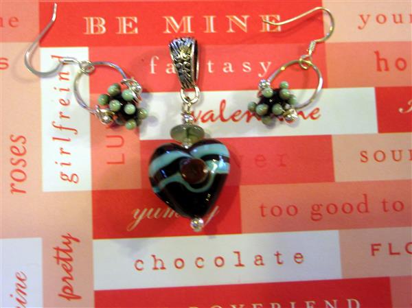 This green and brown set is like a breath of fresh air this morning, as i sit and look at snow outside my window. The fall colors remind me of the lovely Indian summer we enjoyed just a month ago, and it's like a breath of fresh air. It comes with an 18 inch chain.